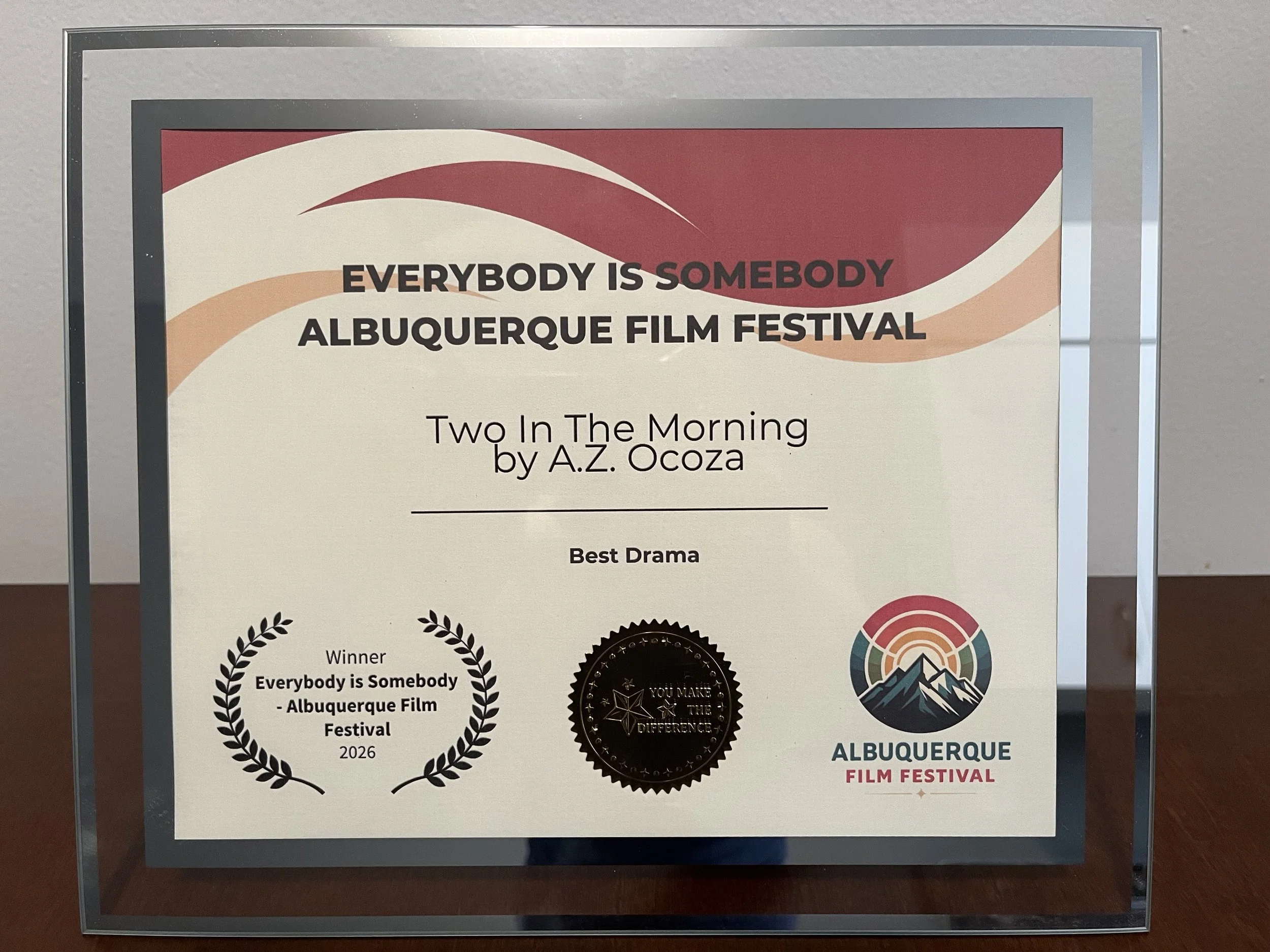 A.Z & Team were blessed to present Two in the Morning at the Albuquerque Film Festival where we won BEST DRAMA! Thank you for hosting us!